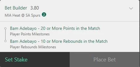 Bam has been in pretty good form. The odds are shorter than last game but the Spurs loom as a pretty favorable matchup for Bam. With opposition Centers putting up plenty of Points and Rebounds. Go Bam 🔥🔥🔥
