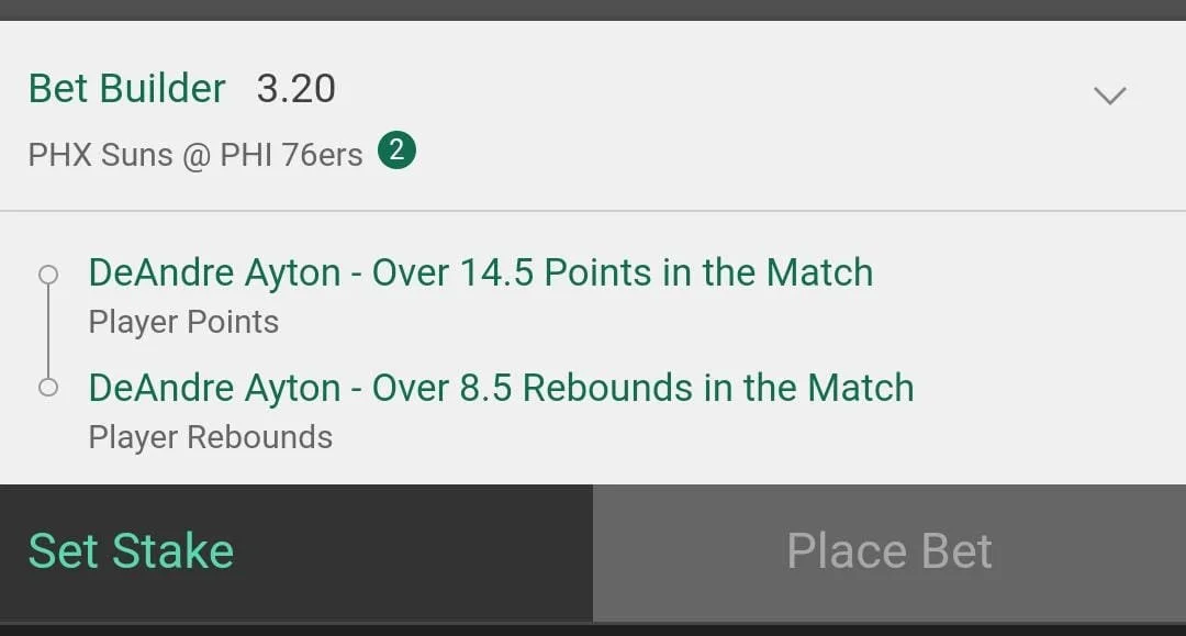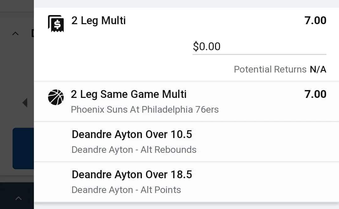 Expansion on the above bet. Deandre has hit this line in about 31% of games this season. I think we're seeing great value odds here despite the matchup. Not necessarily looking for an explosive 19-11 more a 19-11 just accumulating throughout the game. But will take it either way. Go Deandre 🔥🔥🔥