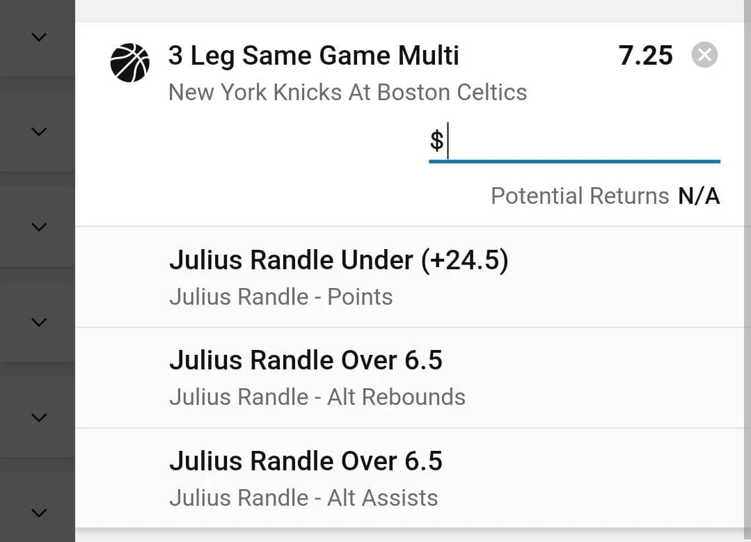 Julius Randle 1.5 units. Take odds over $6. Julius has hit this line in 9 games this season. Up against a Celtics team that has been decent defensively we're looking for him to play an all-around game. Go Julius 🔥🔥🔥