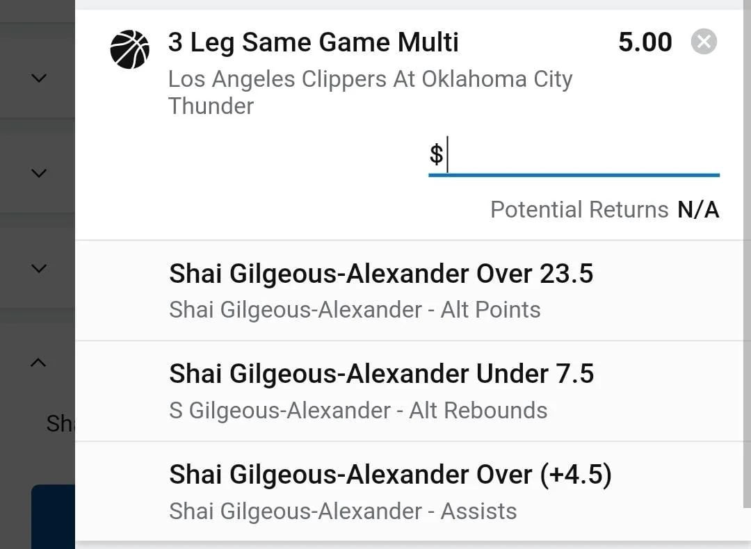 SGA has been playing well of late. Hitting this line in 2 of his last 5 games. Over the past 2 seasons he's hit this line in about 27% of games including 1 against the Clippers. The Clippers defense is good on the whole but has been giving up plenty of points and assists to the Point Guard position. Go SGA 🔥🔥🔥