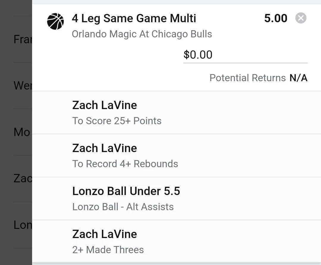 Speculation play here. He's returning from protocols here and has 1 triple double this season. A speculator for sure so just a very small bet. But opposition Point Guards have been going off vs the Magic of late. Let's see what Lonzo can do. Go Lonzo 🔥🔥🔥
