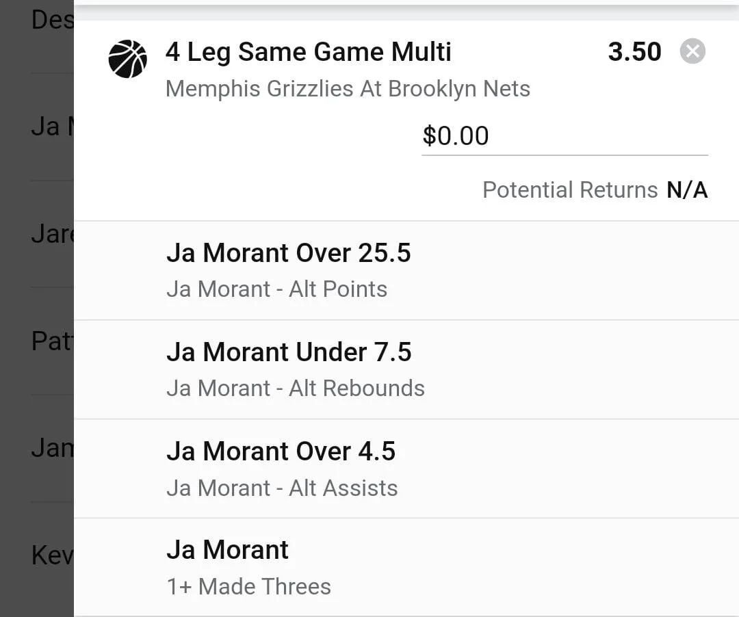 I think Ja should have a good chance at scoring the ball well vs the Nets. They are allowing plenty of points to opposition Point Guards. Ja is averaging 28.6ppg 6rpg 5.apg over his last 5 looking for him to play to those averages today. Go Ja 🔥🔥🔥
