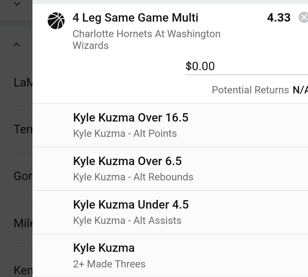 Kuz has been in good form. We ride the hot hand here against the Charlotte Hornets 28th in Drtg and 2nd in Pace it's a nice mix for some stats for Kuz. Let's go Kuz 🔥🔥🔥
