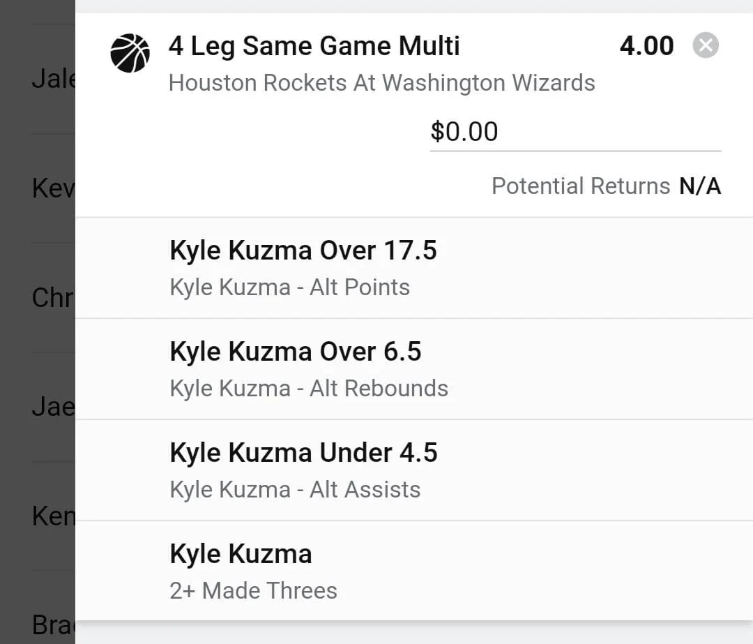 Kyle has been in good form of late making the most of opportunities. He's averaging 23.7ppg 10.5rpg and 3.2apg over his last 6. In that span he's hit this line in 3 games. I like his scoring form to continue here against a Rockets team ranked 29th in the NBA in Drtg and giving up plenty of points to Power Forwards. Go Kuz 🔥🔥🔥
