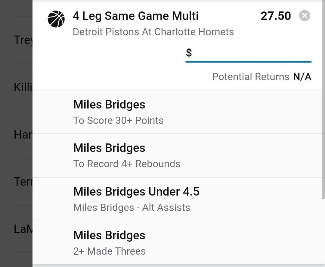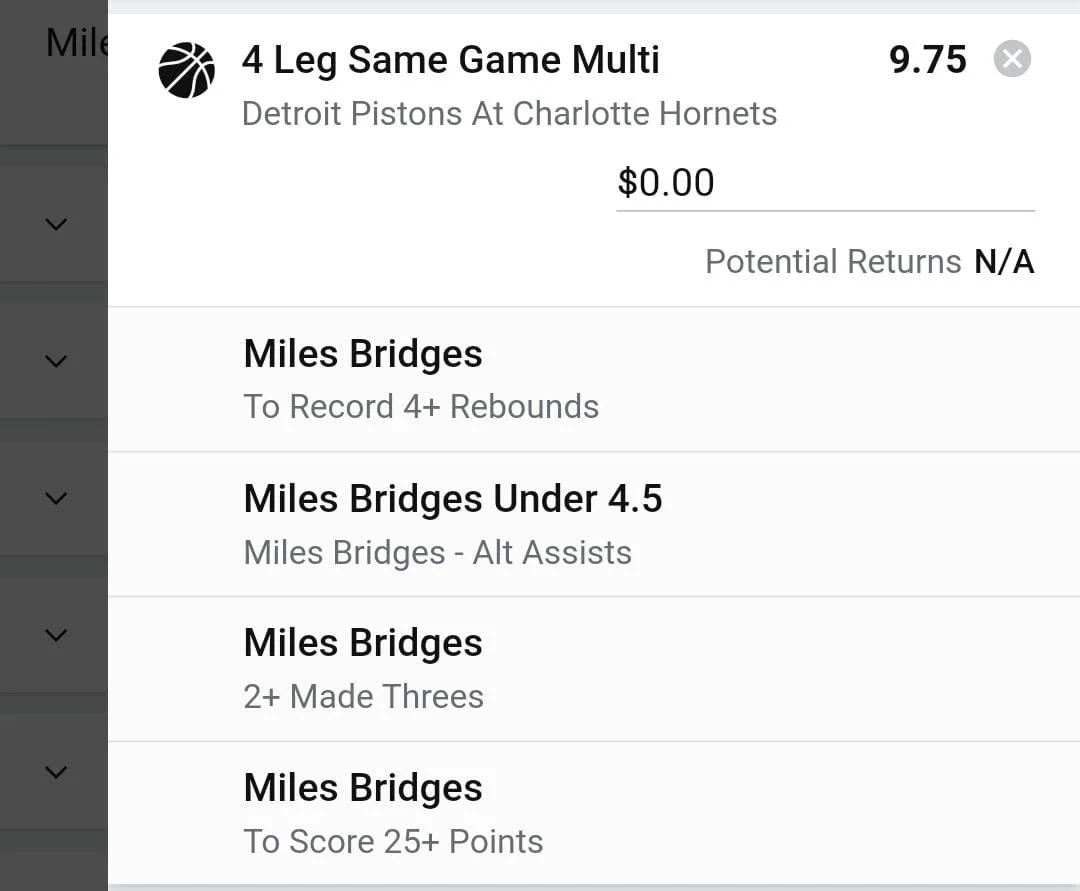 We're splitting our Miles Bridges bet and playing a little on both. Check out the big odds bet in the Optional Section.