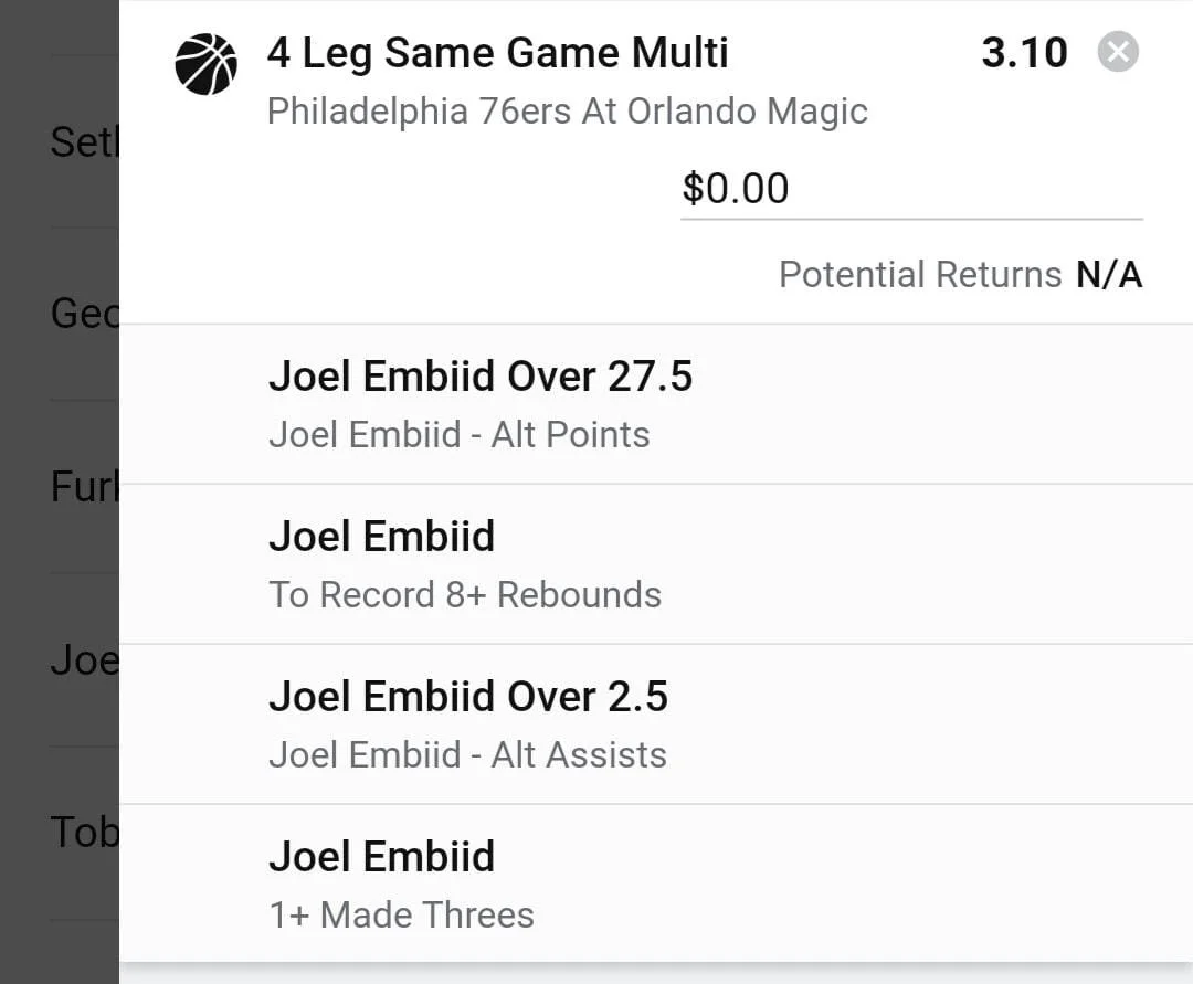 The big man is playing well of late averaging 29.5ppg 10.7rpg 4apg. He's hit this line in 4 of his last 10 games and I see this as a favourable matchup for the bigman against the Magic. One key danger could be a blowout the Magic are 8.5 favourites. In that scenario we'll need Joel to get his work done early. Go Joel 🔥🔥🔥