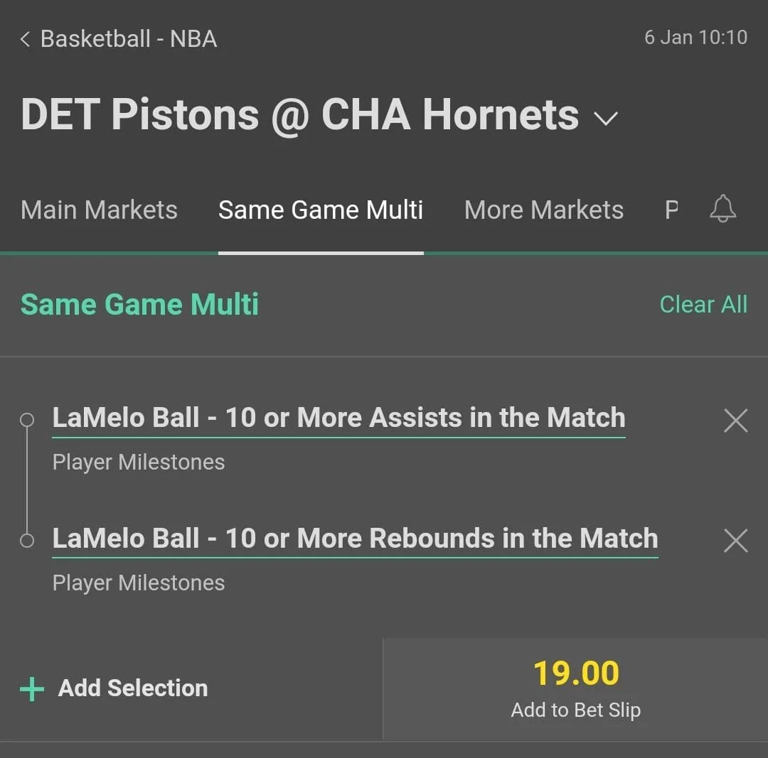 He has hit this line in 2 games this season and gone very close multiple times. I think we're seeing great value for LaMelo here up against the Pistons. Go LaMelo 🔥🔥🔥