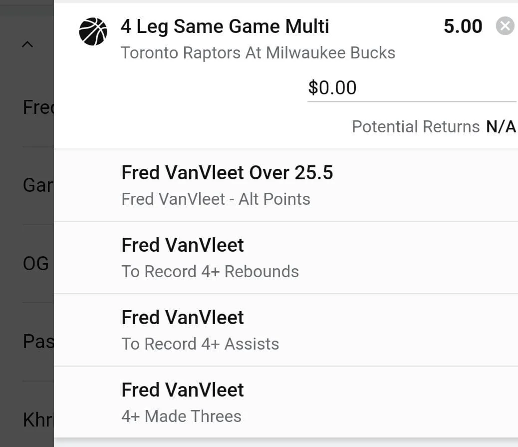 Fred is in a strong run of form. Today he's up against a very good defensive matchup in Jrue Holiday. However he's already put up 29-5-4 against the Bucks so I don't mind him here at these odds especially with Giannis out of the lineup. Go Fred 🔥🔥🔥
