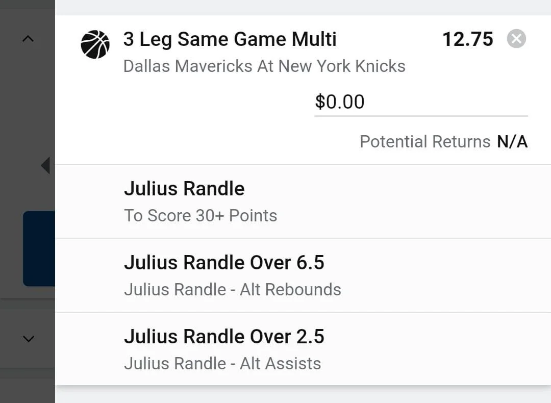 Julius Randle 3 units. Take odds over $4. Julius assist numbers have been down of late. But I still like the value we're seeing here. He's hit this line in 11 games this season and hit it 2 of 2 vs the Mavericks last year. Let's go Julius 🔥🔥🔥