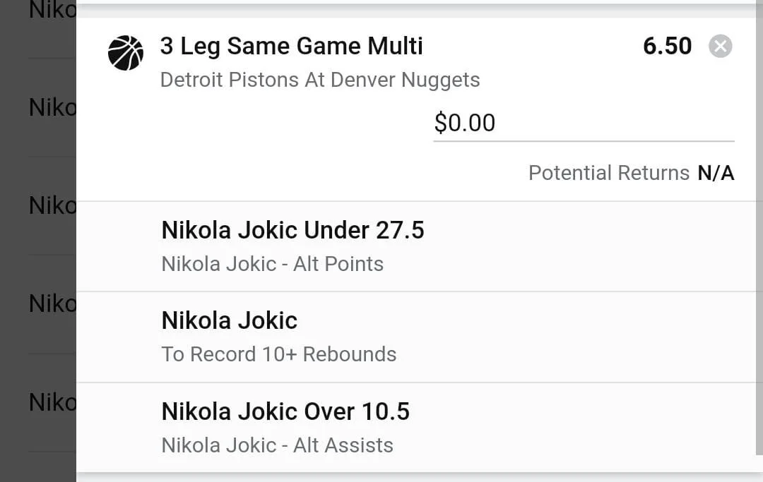 Nikola Jokic 1.5 units. Take odds over $5. Jokic has been assisting at a very high rate over his last 10 games averaging 9.1apg over his last 10. He also hit 11 assists in both games vs the Pistons last season. I like Jokic to have a good game here. Go Joker 🃏🃏🃏
