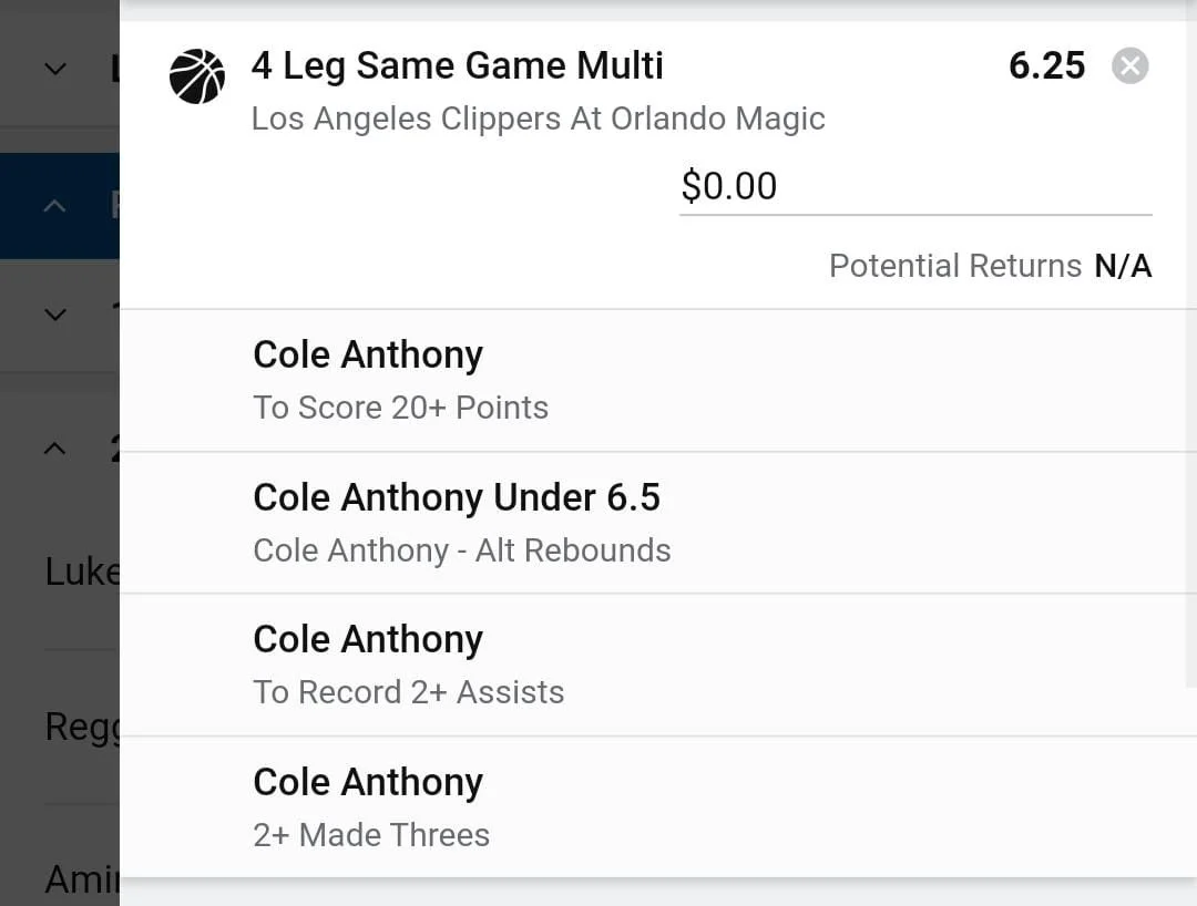 Cole has hit this line plenty this season including a game against the Clippers. I like his chances here. The Clippers are on the second half of a back to back coming off a massive comeback win. Maybe they will come out flat and Cole can go to work. Let's see. Go Cole 🔥🔥🔥