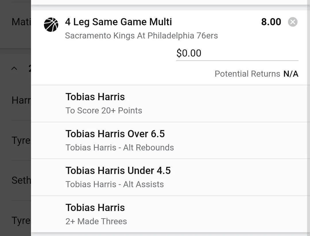 Tobias Harris has hit this line plenty this season averaging 18.7ppg 7.4rpg 3.8apg. Now recently Joel Embiid has been very dominant. I can see that opening up some opportunities for Tobias here. Let's go Tobias 🔥🔥🔥