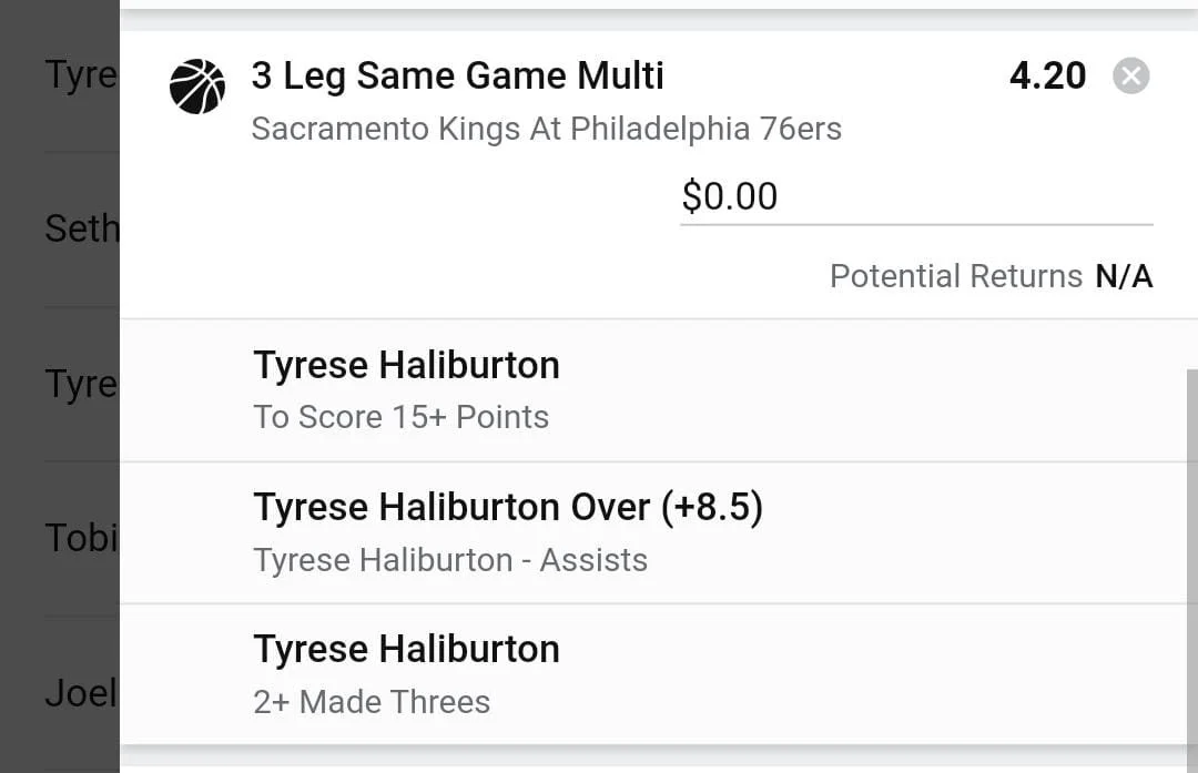 With Fox questionable I really like Haliburtons chances here. The 76ers are playing great defense. But since Gentry took over Haliburton has received plenty of chances to run the show. Go Tyrese 🔥🔥🔥