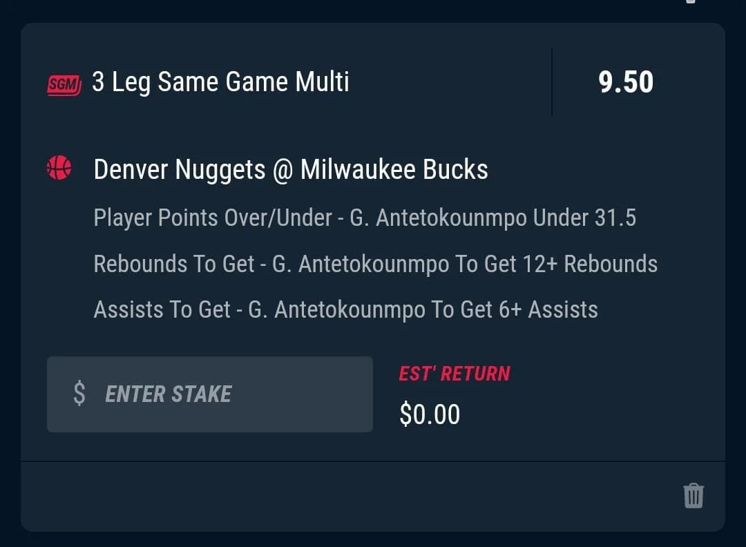 This bet is based on the most recent matchups between Giannis and Jokic. He's hit this line in 3 of their last 6 matchups and generally played more of an assisting role vs the Nuggets. Let's go Giannis 🔥🔥🔥