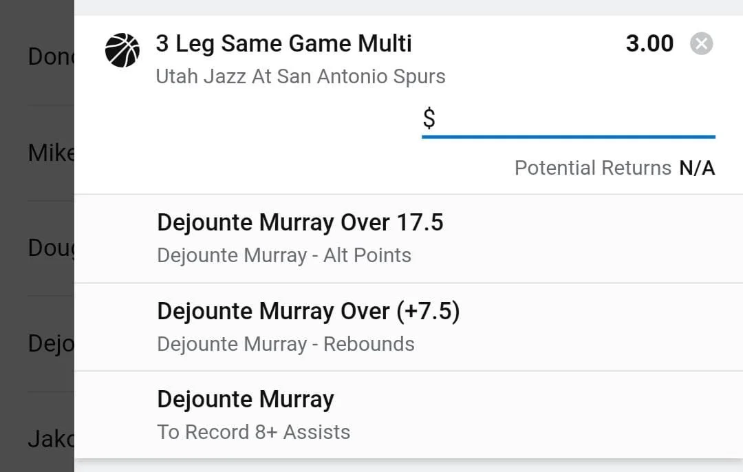 Ok, so Dejounte has 2 triple doubles in his last 10 games. And multiple near misses. Now the reason we're seeing these odds is because the Jazz have been great at limiting opposition Point Guards in terms of their assist numbers. In his only matchup with the Jazz this season Dejounte went 16-11-11 looking for more of the same here. Let's go Dejounte 🔥🔥🔥