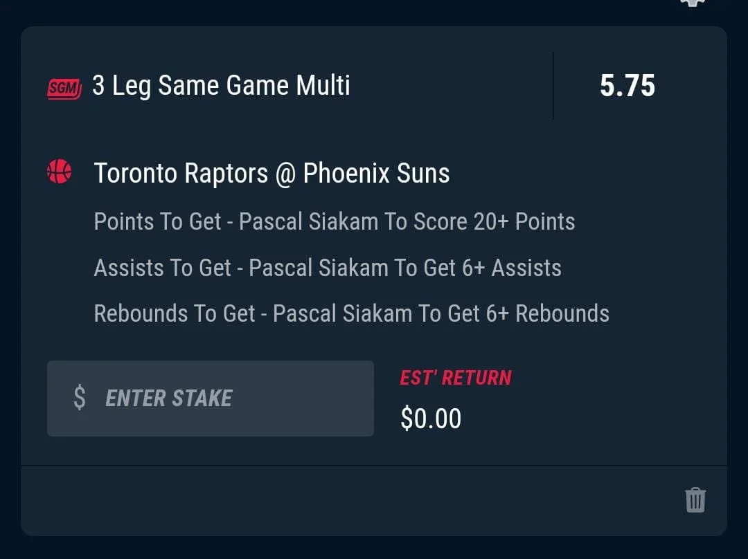 Expansion on the above bet. I like Pascal in this matchup considering the tempo the Sun's play at. I can see some Pascal Siakam iso on Ayton or the other Sun's bigs leading to some dimes. Let's go Spicy P 🌶️🌶️🌶️