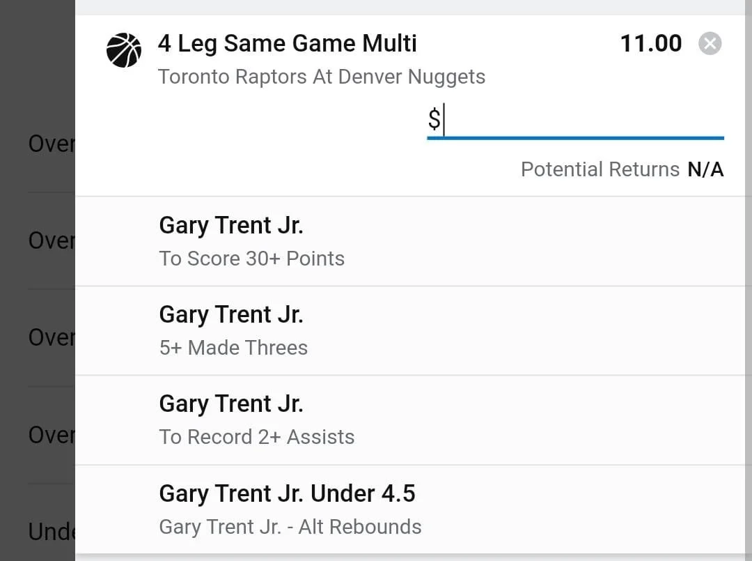Gary Trent Jr 1 unit. Take odds over $7. Fred VanVleet is out. Looking for Gary Trent Jr to step up here. He's hit this line in 4 of 11 games without FVV averaging 22.8ppg in those matchups. Overall 🪨🪨🪨 and 💎💎💎 type player on the season we're looking for 💎💎💎 here. Let's go Gary 🔥🔥🔥