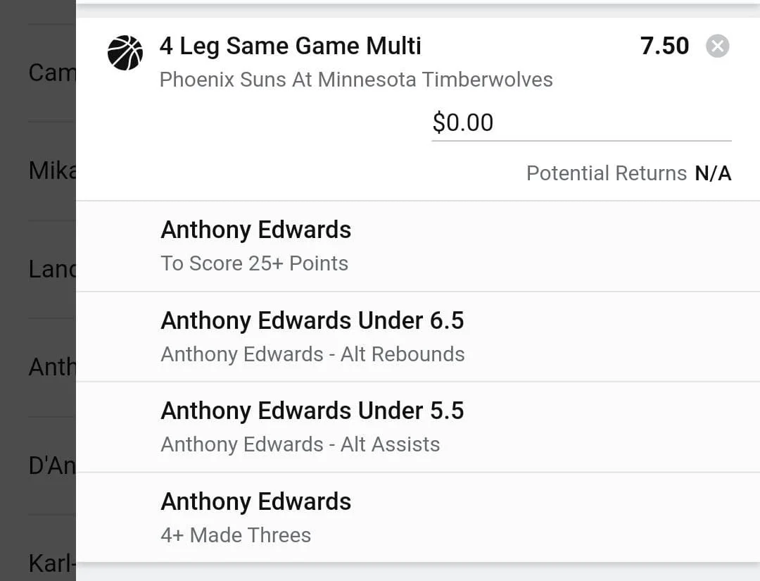 Edwards really scores the ball, the matchup’s haven’t slowed him down too much, he is going to be aggressive either way, and with no CP3, the suns defense isn’t as locked down as usual, so we like this value play.