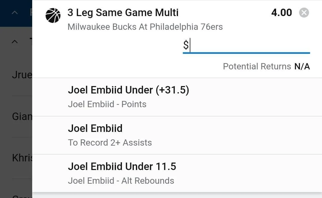 Hitting about 1 in 2.5 games against Embiid but also hitting plenty on the season. Matchup based has had a few big games in matchup with Embiid. Go Giannis get freaky with it 🔥🔥🔥