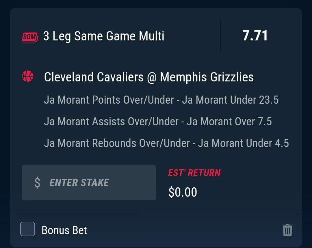 Other Bookmakers: Pointsbet, Ladbrokes.