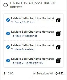 LaMelo has hit this line in 4 games out of 11 so far this season. And he is presented with a great opportunity to hit it again today against the Lakers who giving up a massive 26.0ppg and 9.5apg to players in the Point Guard position. Lets go LaMelo 🔥🔥🔥