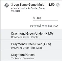 Draymond has hit this line in 5 games out of 9 this season including yesterday for us. He's a very unique player who tends to assist and rebound well but doesn't score the ball much. He's attempting 6FGA per game this season playing a lot of "small ball 5" his role is to keep the team humming and get the other players going more than himself. The shots he takes are as the result of good team offense and making the right reads. In terms of the opposition the Hawks are playing great defense in terms of preventing points to opposition Centers. Go Draymond 🔥🔥🔥