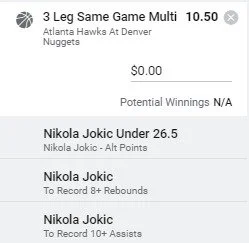 Jokic has hit this line in 1 game this season. Today he faces an Atlanta Hawks defense which has been great at preventing opposing Centers from scoring the ball. Looking for Jokic to use his passing skills a little more today to impact the game and help his team. Go Joker 🔥🔥🔥