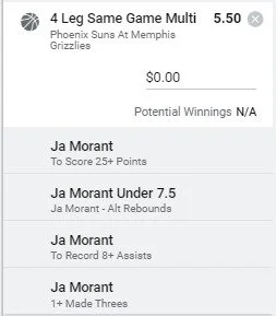 Ja has hit this line in 5 games this season and has really taken off offensively this year averaging 7 ppg more than last year. The Phoenix Suns are a good defensive team but are giving up plenty of points and assists to the Point Guard position add to this the Suns are top 10 in pace this year and I think it's setup nicely for Ja to go for this line. Go Ja 🔥🔥🔥