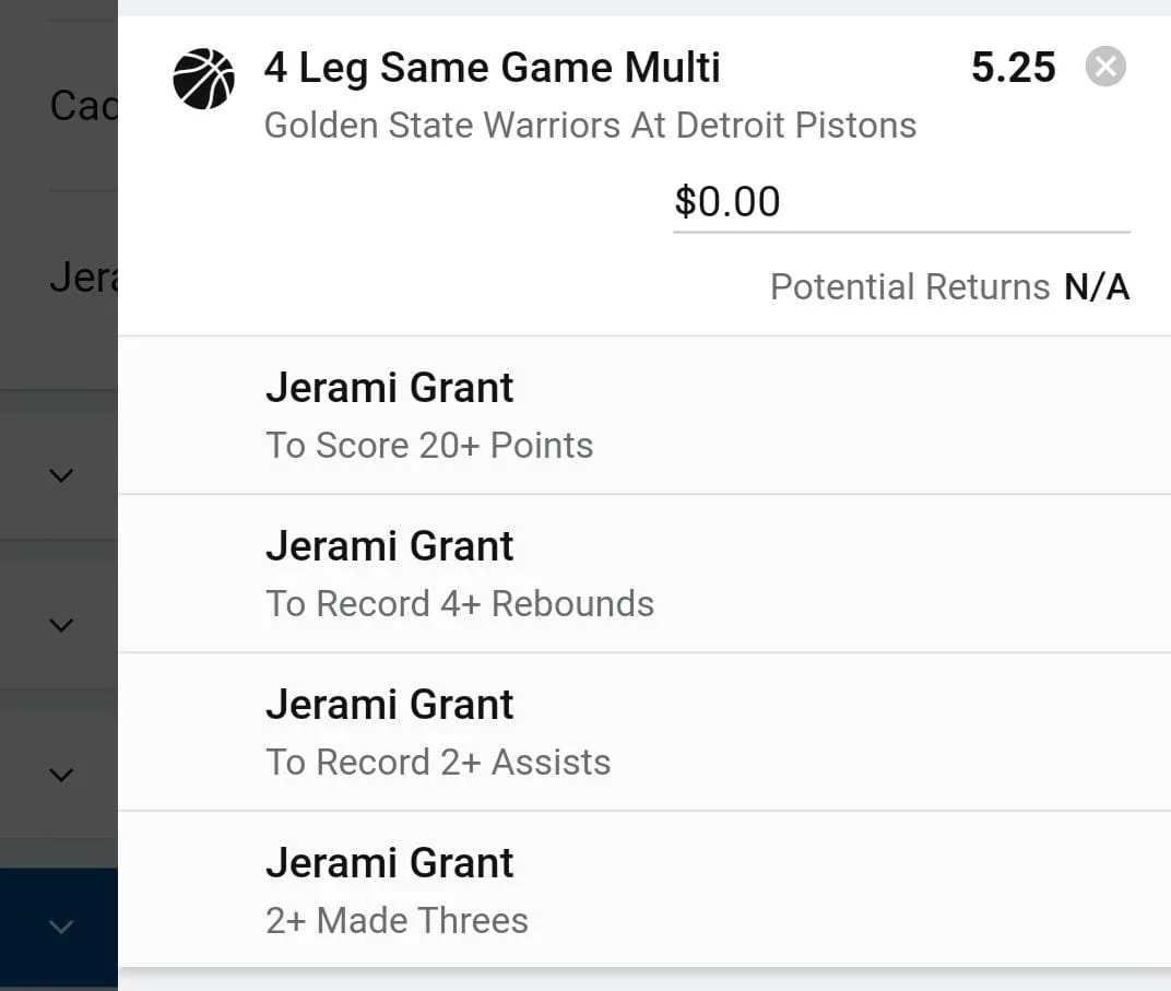Jerami is averaging 18ppg 4.3rpg 2.3apg. Jerami has hit this line in 4 games this season. 2 games in his last 5 and about 40% of his games over the past 2 seasons. Today they face a very good defensive team, who play at a fast pace, the Golden State Warriors. However with Steph, Draymond and Iguodala and Porter Jr resting the second half of a back to back I think this is a nice spot for Jerami to have a good game. Go Jerami 🔥🔥🔥