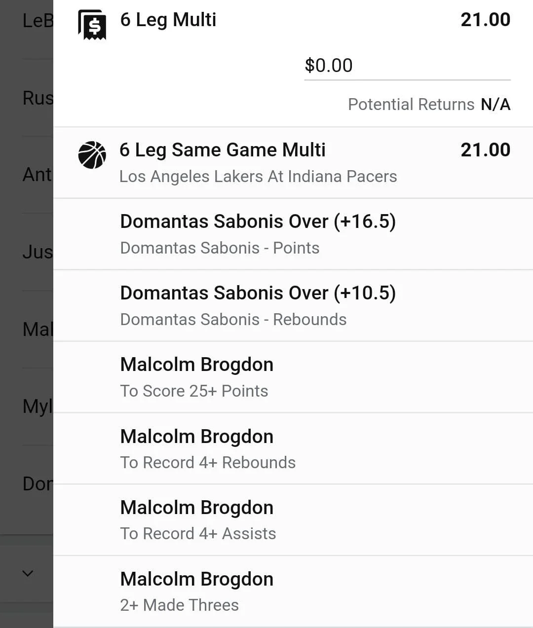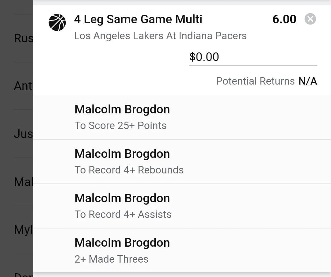 Malcolm Brogdon is averaging 20.9ppg 6.1rpg 6.1apg with 1.9 3PM. He's hit this line in 4 games this season. Today I like his matchup against the up tempo Lakers who are giving up plenty of points and assists. Malcolm has hit this line in about 24% of games over the past 2 seasons and I think he's somewhere around that probability to hit today. Go Malcolm π₯π₯π₯