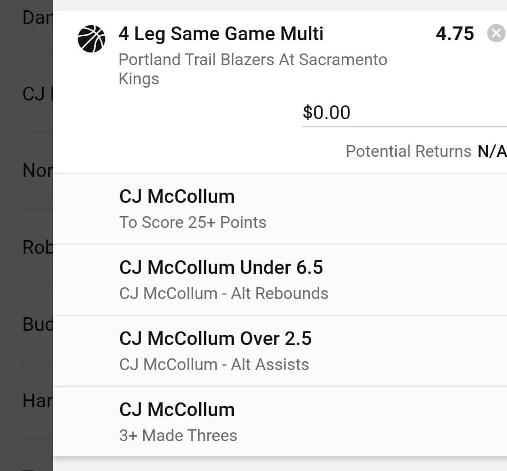CJ is averaging 21ppg 4.2rpg 4.3apg. He's hit this line in 5 games this year including 2 of his last 5. Over the past 2 seasons he's hitting this line in about 31% of games. The reason I really like this bet is the macthup the Kings are ranked 25th in Drtg and are giving up plenty of points to Shootinf Guards. CJ has enjoyed the matchup scoring 37,34,28 points in his last 3 games vs the Trailblazers. Go CJ π₯π₯π₯