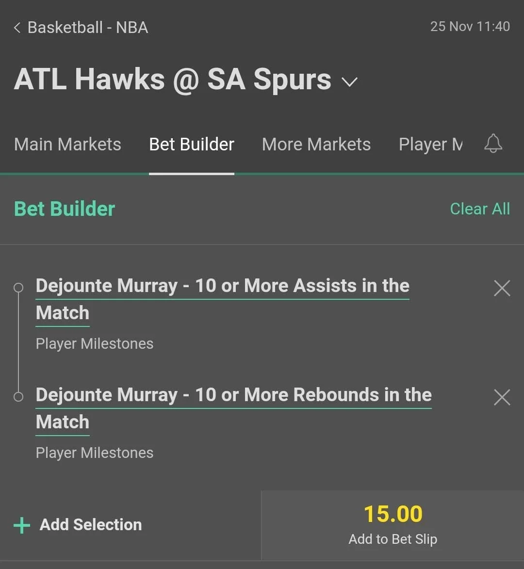 He's hit 3 triple-doubles this season and has been very close on 4 other occasions this season. He's doing plenty for the Spurs this year and I think he has a great opportunity against the Hawks go Dejounte π₯π₯π₯