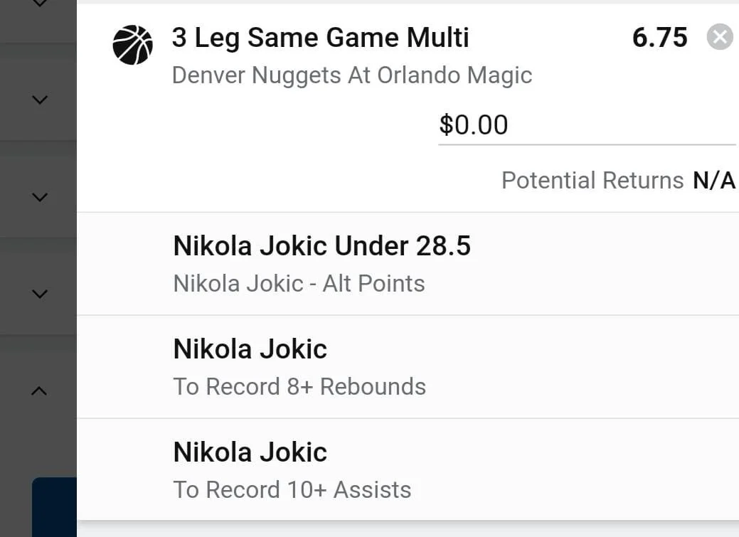 Nikola is averaging 26.2ppg 13.7rpg 6.4apg. He's hit this line in 2 games this season and been close a few others. Over the last 2 seasons he's hit this line in about 29% of games. His assist numbers are down this season. Today he faces an Orlando Magic team who are ranked 25th in Drtg. This is a good opportunity for Nikola to either score the ball himself, drop dimes, or maybe some of both. Last season he enjoyed the matchup hitting this line in 2 of 2 games vs the Magic. Go Joker π₯π₯π₯