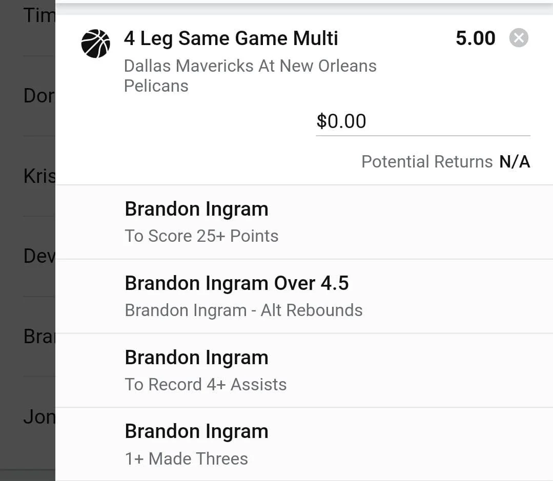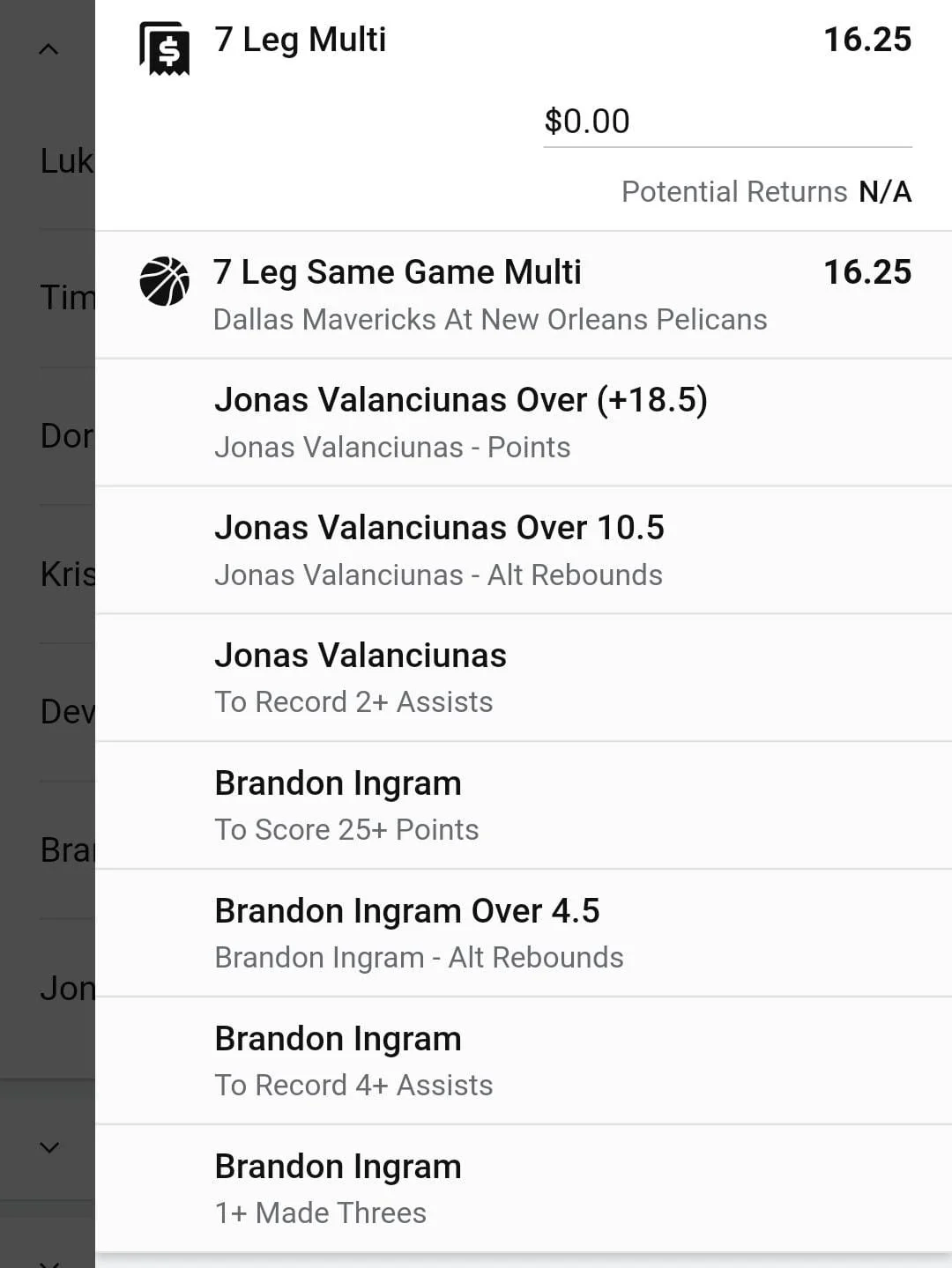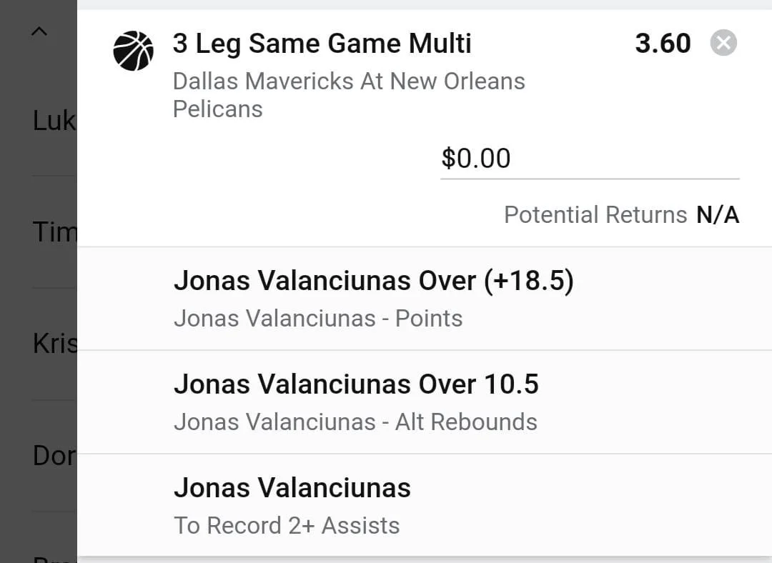 Jonas and Brandon. The 2 most consistent performers on the Pelicans. They've combined to hit these lines in 2 games this season and gone close a couple of others. Let's see if they can get it going here today against the Mavs. Go Brandon and Jonas π₯π₯π₯