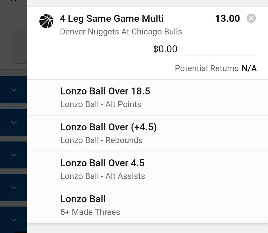 Lonzo has hit this line 9 times in his career. Including 1 triple double this season. Just a small bet here. The reasons I like Lonzo today are he will be taking on a larger role than normal. And the rate at which the Nuggets give up assists to the Point Guard position. Lets go Lonzo 🔥🔥🔥