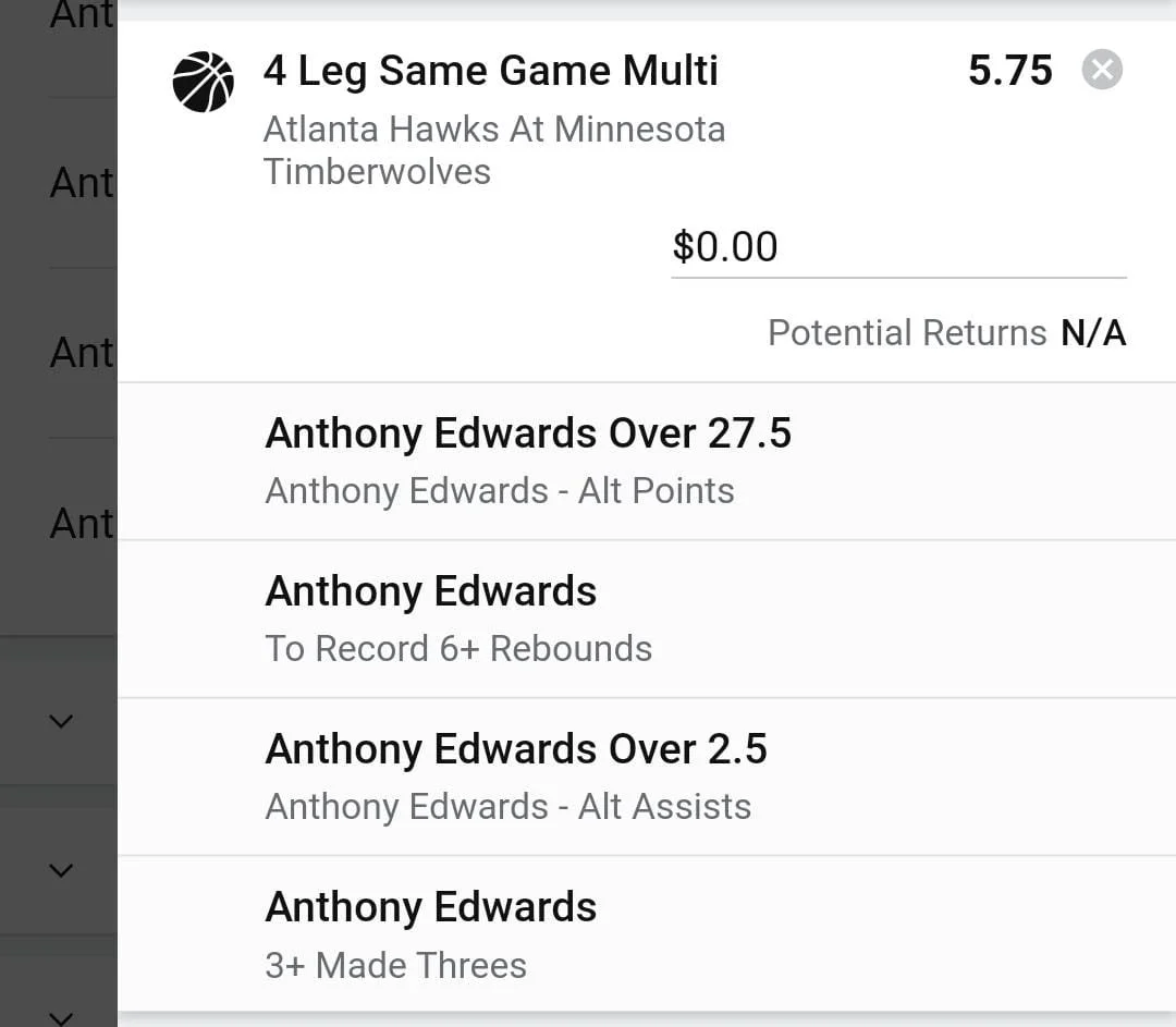 Anthony is averaging 22ppg 6.3rpg 3.6apg. He's hit this line in 4 games this season. He has a massive opportunity here. The Timberwolves have 5 players listed as questionable on the injury report including KAT and D'Angelo Russell if those 2 are out he'll be a massive chance at this line. Even if they're in it's decent as the Hawks are ranked 26th in Drtg this season. Go Anthony 🔥🔥🔥