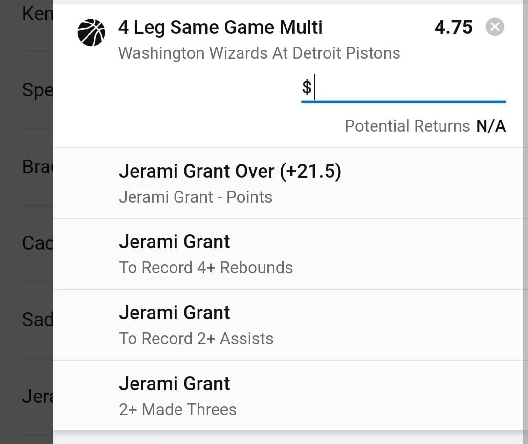 Jerami is averaging 20.1ppg 4.8rpg 2.6apg. He's hit this line in 8 games this season including 2 in his last 5. He's hit this line in about 32% of the games he's played for the Pistions. I think today up against the Washington Wizards team that are about league average defensively I think he's a good bet at these odds. Go Jerami 🔥🔥🔥