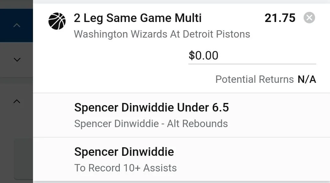 Spencer Dinwiddie 1 unit. Take odds over $15. Spencer is averaging 13.4ppg 4.9rpg 5.2apg. He's hit this line in 2 games this season and about 13% of games over the past 3 seasons, has hit in 1 of last 5 also. I think we're seeing great value here for Spencer and the books are sleeping on his ability as a passer especially up against a Pistons team that allows plenty of assists to Point Guards. Go Spencer 🔥🔥🔥