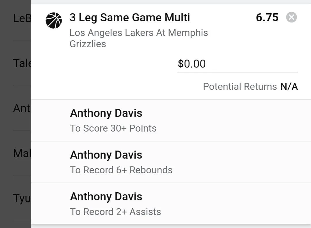 AD is averaging 24.1ppg 10.3rpg 3.1apg. He's hit this line in 7 games this season and about 22% of his career games for the Lakers. I like AD here against the Grizzlies team that are ranked 24th in the NBA in Drtg and giving up plenty of points to opposition front court players. Go AD 🔥🔥🔥