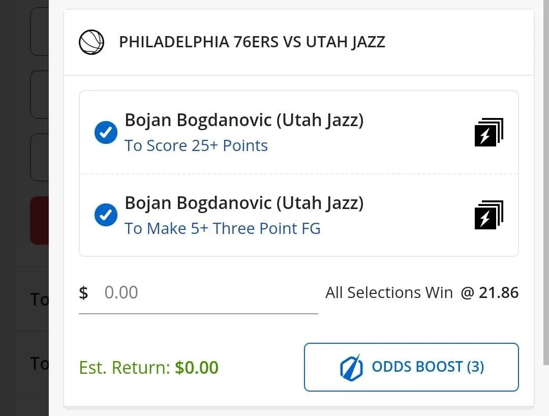 Bojan is a career 39.4% 3 point shooter. He's shooting 41.1% this season. If he gets hot the Jazz will keep looking for him. It's a very aggressive bet, but he's already hit this line in 2 games this season and he's hit this line in about 12% of his games for the Jazz so a pretty solid play at the odds. Go Bojan 🔥🔥🔥