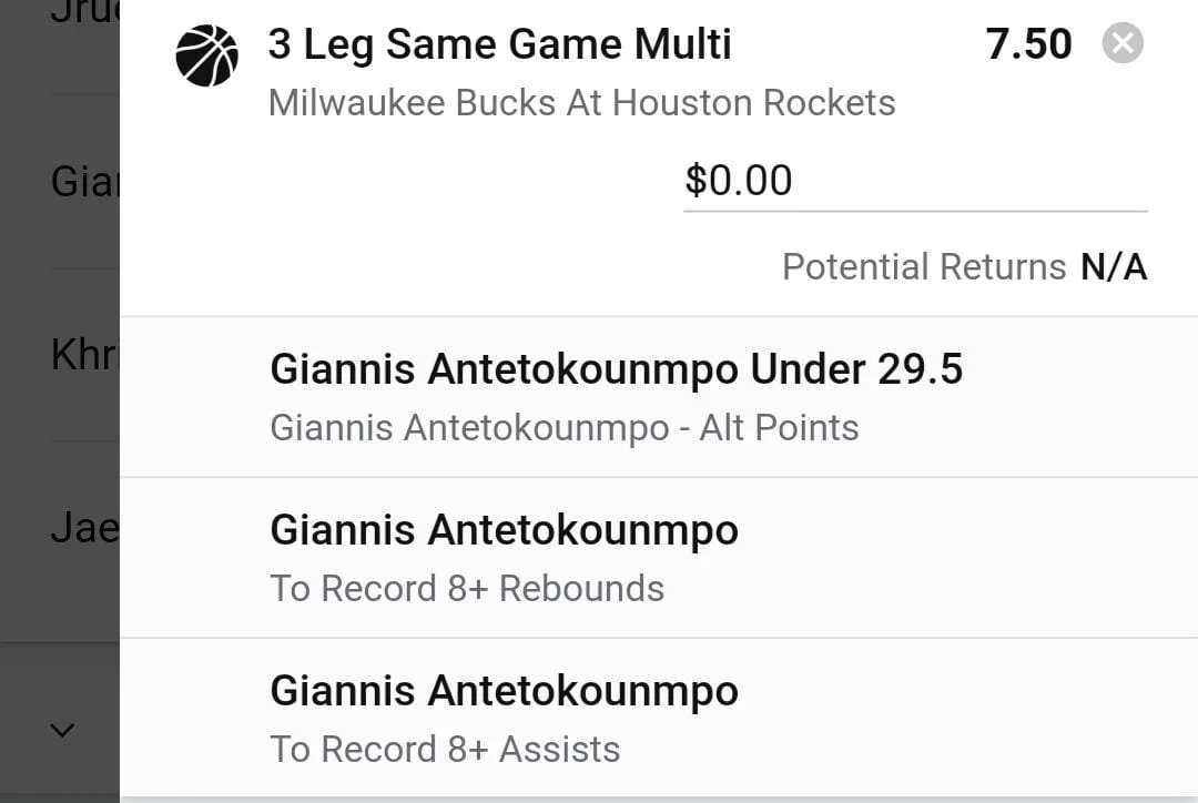 Giannis is averaging 27ppg 11.6rpg 5.7apg. He's hit this line in 4 games this season and about 23% of games over the past 2 seasons. I like Giannis chances here against the Rockets who are ranked 1st in the NBA in Pace and are coming into the game on the back of an incredible 7 game winning streak. That probably ends here today and with the Pace I think there could be plenty of stats for Giannis. Go Giannis 🔥🔥🔥