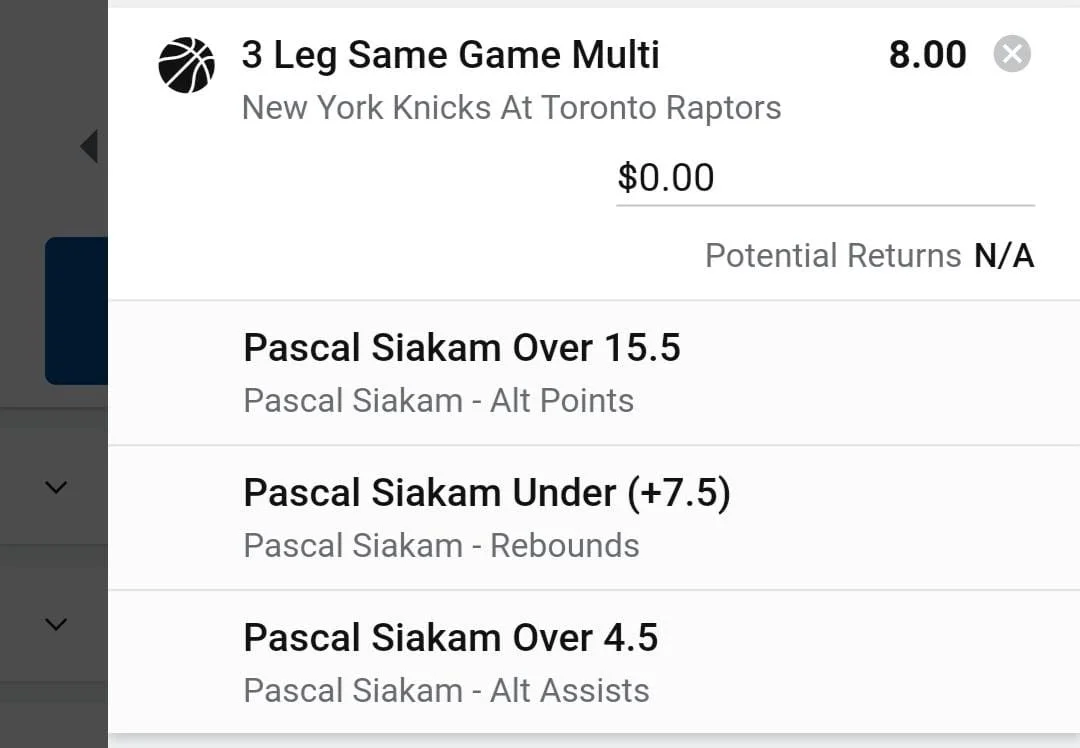 Pascal has been scoring the ball well lately. He's averaging 19.4ppg 7.4rpg 3.8apg. He goes hard to the offensive glass averaging 2 o boards per game. He could burn us on the glass but it's giving us a nice boost to the odds and I'm happy to play at this price. Go Spicy P 🌶🌶🌶