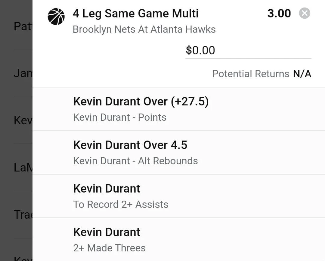 KD is averaging 28.4ppg 7.7rpg 5.4apg. He's hit this line 11 games this season including 2 in the last 5. Over the past 2 seasons KD has hit this line in about 41% of games including 4 of 4 vs the Hawks. Looking to make it 5 for 5 today against a Hawks team ranked 25th in the NBA in Drtg I like his chances. Go KD 🔥🔥🔥