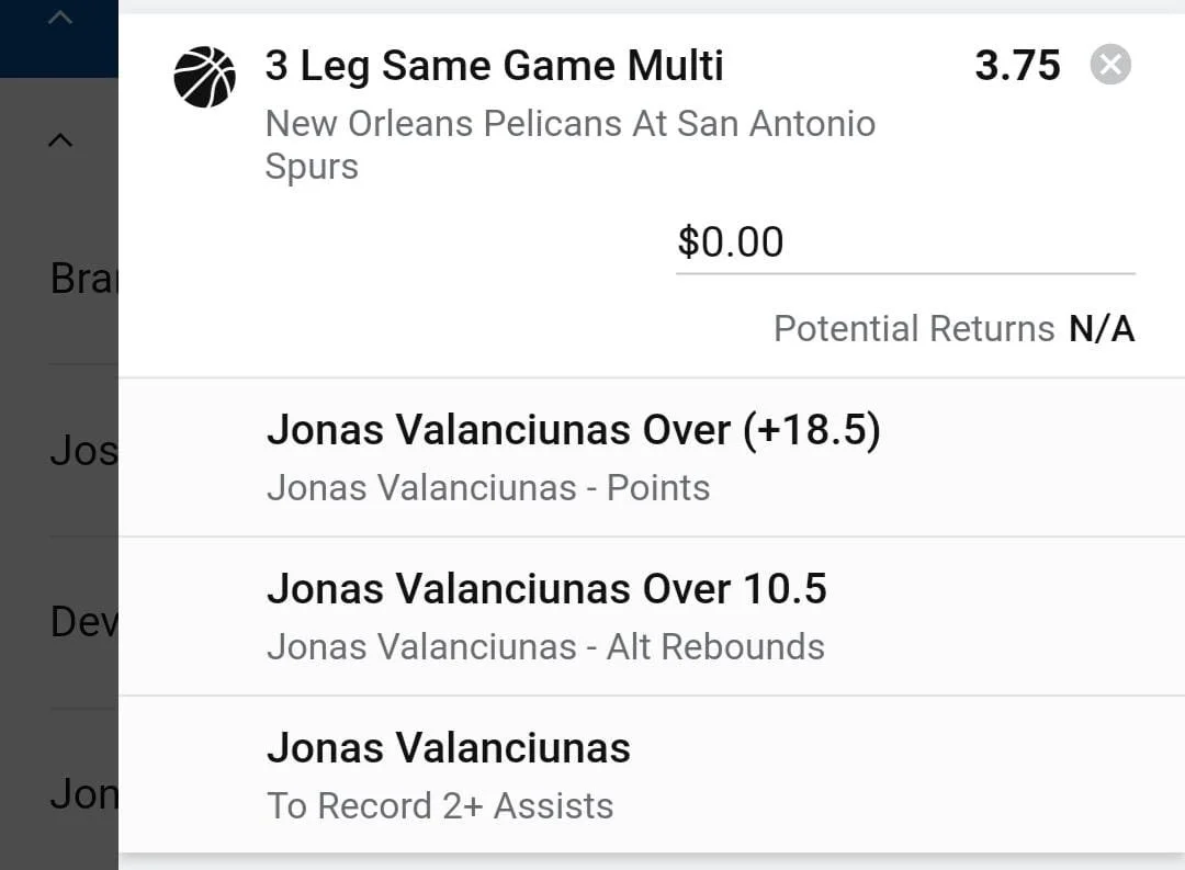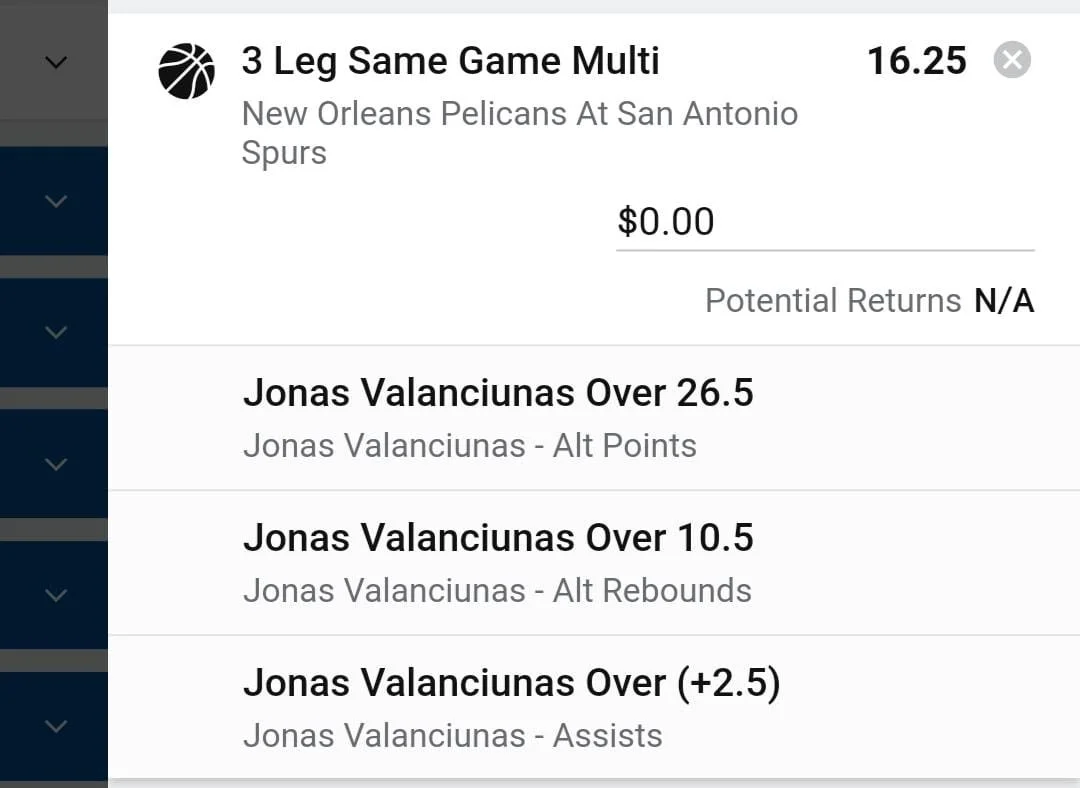 Jonas has hit this in 1 game in his last 5. I see this as a favourable matchup against a Spurs team on the second half of a back to back. Go Jonas 🔥🔥🔥