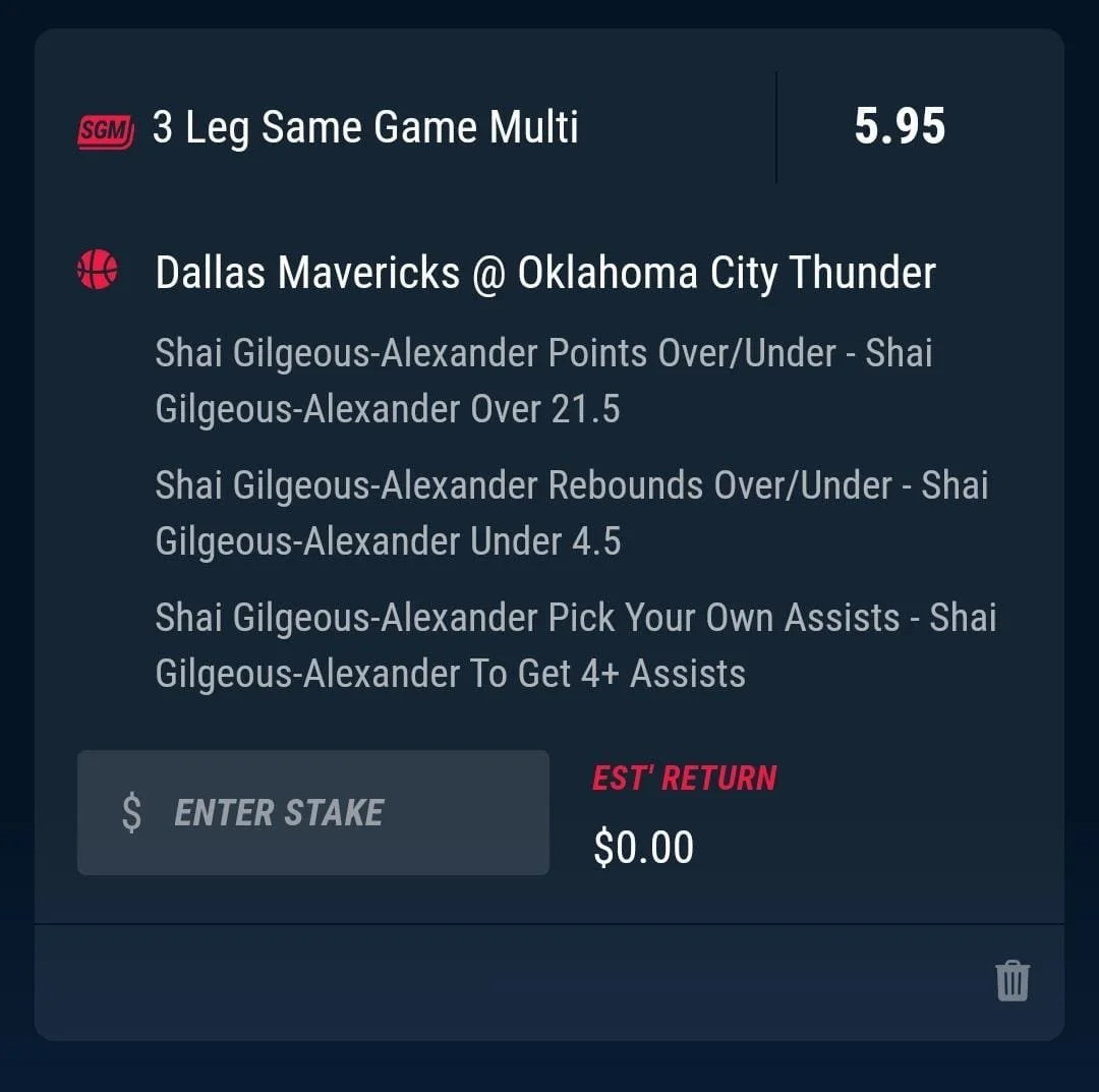 SGA has been scoring well of late and has hit this line in 3 of his last 5 games. Let's see if he can keep up the strong run of form. Go SGA 🔥🔥🔥