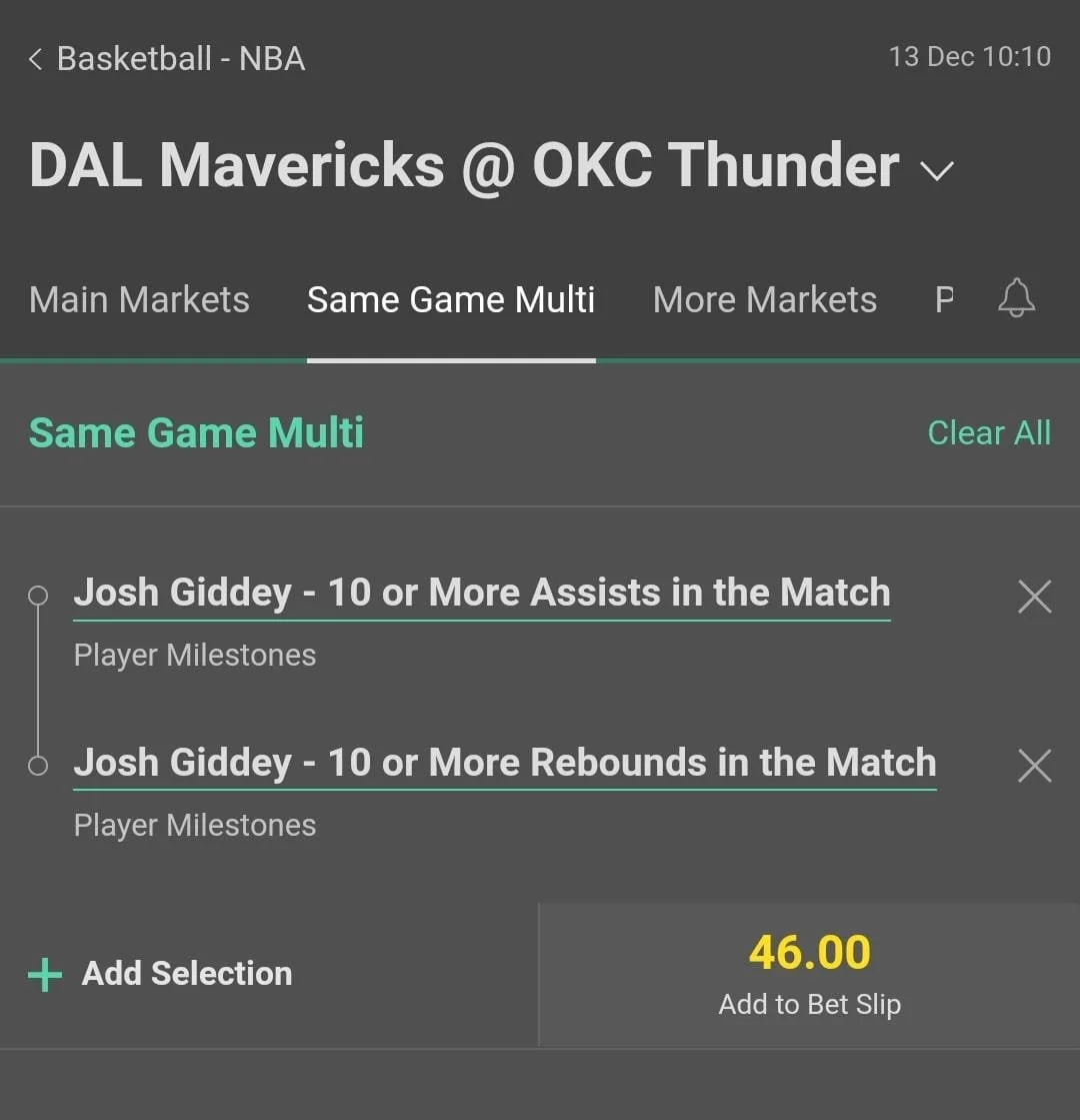 Yet to hit a triple-double in his career. But he's gone close a couple of times and has a nice all-around game. I like him here today against a Mavericks team without Luka Doncic. Go Josh 🇦🇺🇦🇺🇦🇺