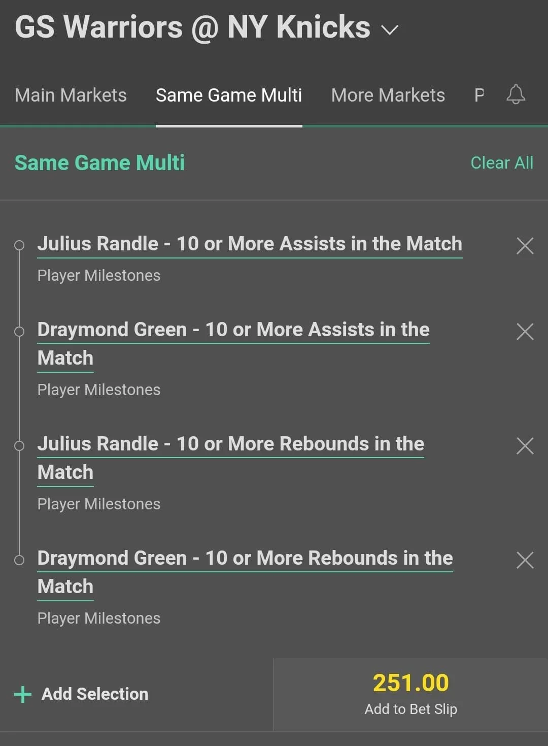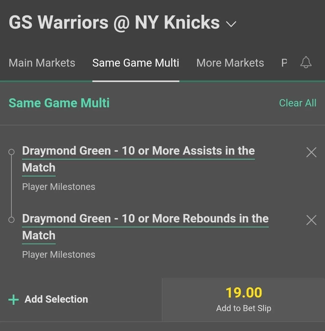 Now I'd advise only play this bet on 365. Draymond has flirted with this line numerous games this season and hit it in 16% of his games last season. He's in a similar role to last season and is probably "due" for this type of performance if there is such a thing. The reason I'd only make this play on 365 and not play a triple-double elsewhere is that sometimes Dray double-doubles assists and rebounds without the points. Go Dray 🔥🔥🔥