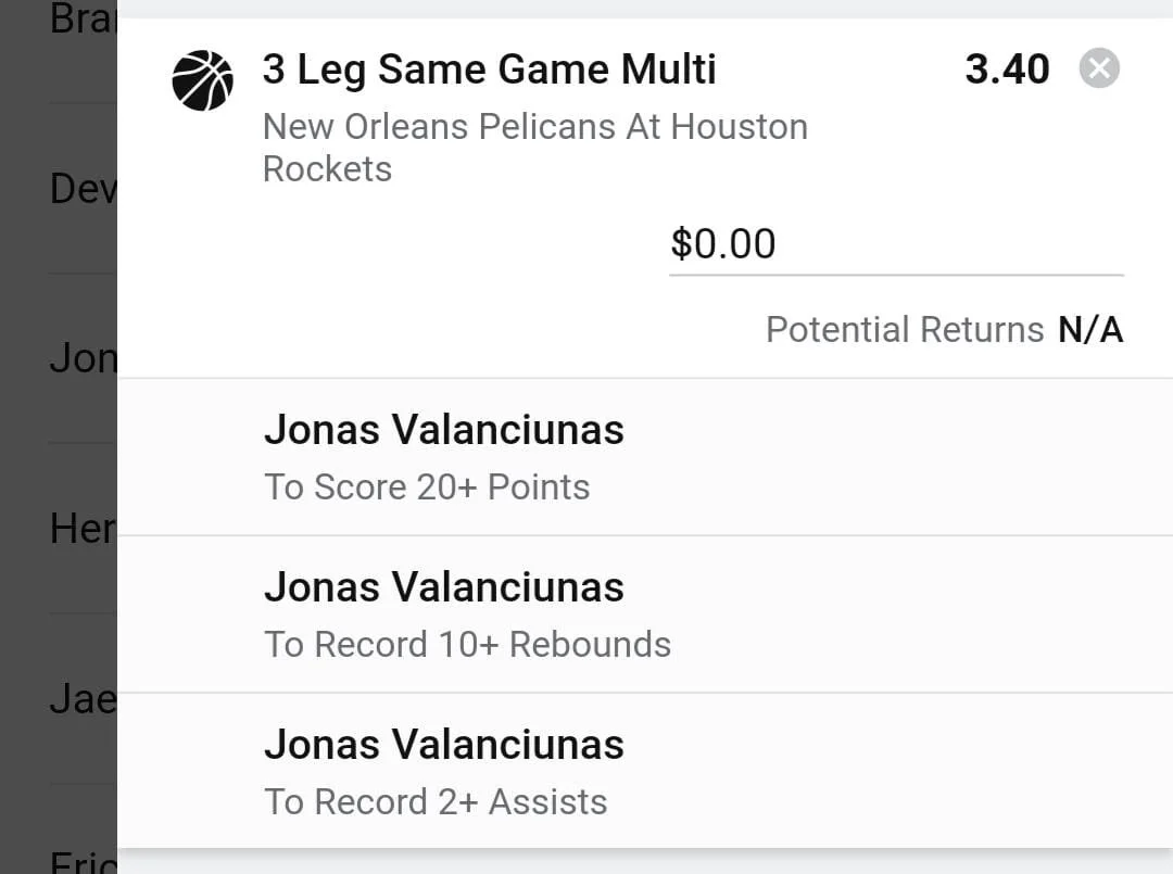 Jonas Valanciunas 3.5 units. Take odds over $2.5. Jonas faces a really nice matchup today against the Houston Rockets a team that are 18th in Drtg but giving up plenty of points and rebounds to opposition Centers and playing at the highest pace in the league. Go JV 🔥🔥🔥