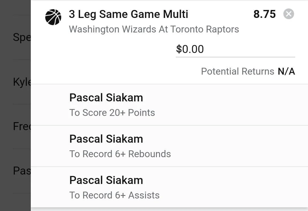Sometimes the Spice is nice. He's hit this line in 2 games this season and about 20% of games over the past 2 seasons. The matchup is good vs a Wizards team which aren't defending the Center position well Pascal should be able to create shots for himself and others. Go Spicy P 🌶🌶🌶