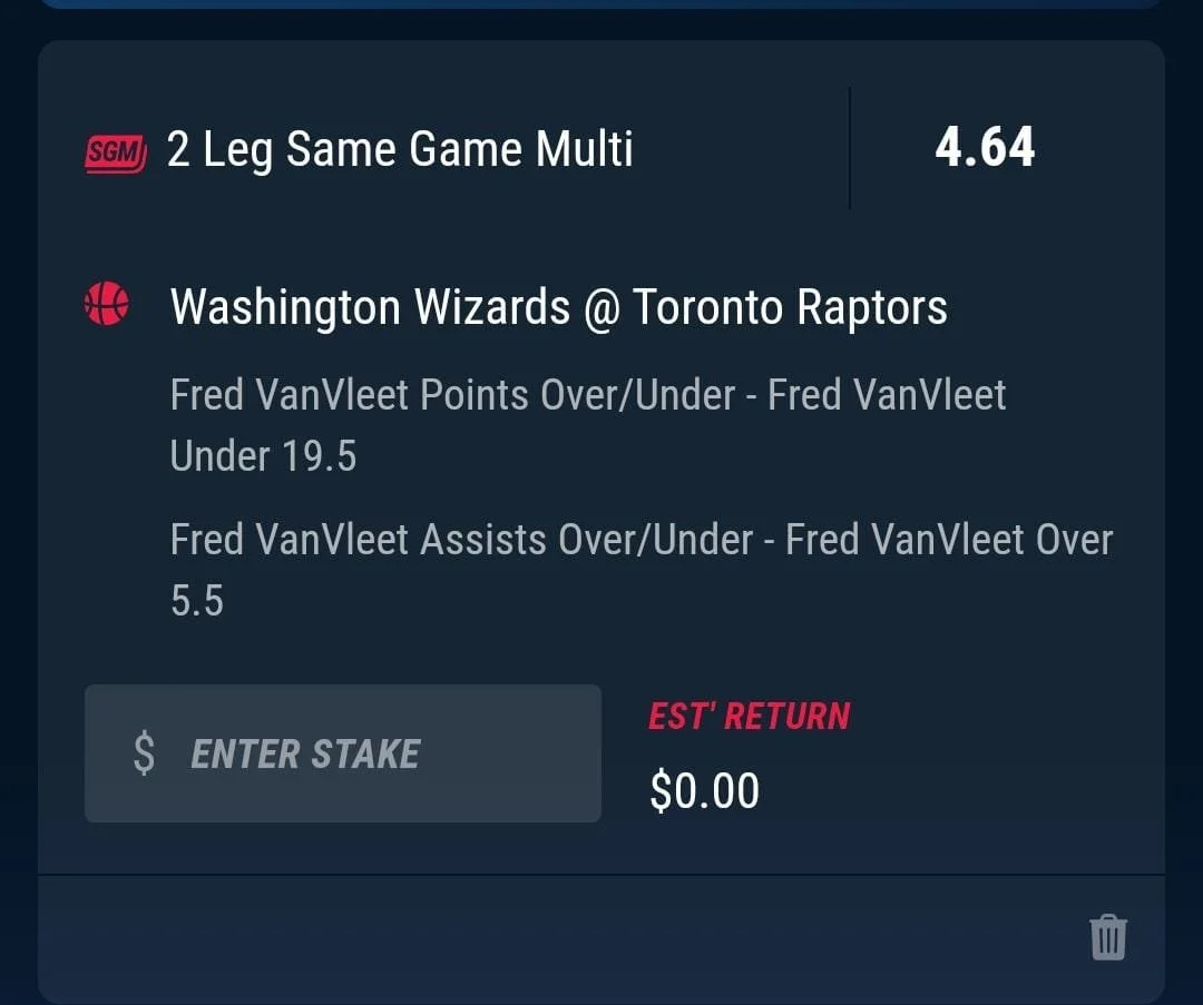Fred is averaging 20.3ppg 5.2rpg 6.2apg. He's hit this line in 9 games this season and about 25% of his games over the past 2 seasons. FVV has been on a heater as of late, today we're betting on him to assist a little more than score against a Washington team he's put up points totals of 12 and 33 against this season. Go FVV assist more today 🔥🔥🔥